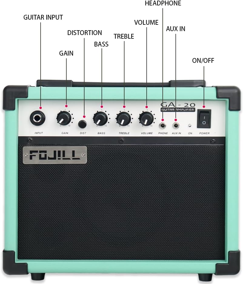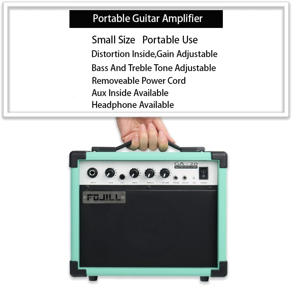 - The 20W Amplifier Have Distortion/Bass/Treble Tone,It Have Removeable Power Cord,It Have 3.5 Headphone Plug,It also have Aux Plug.